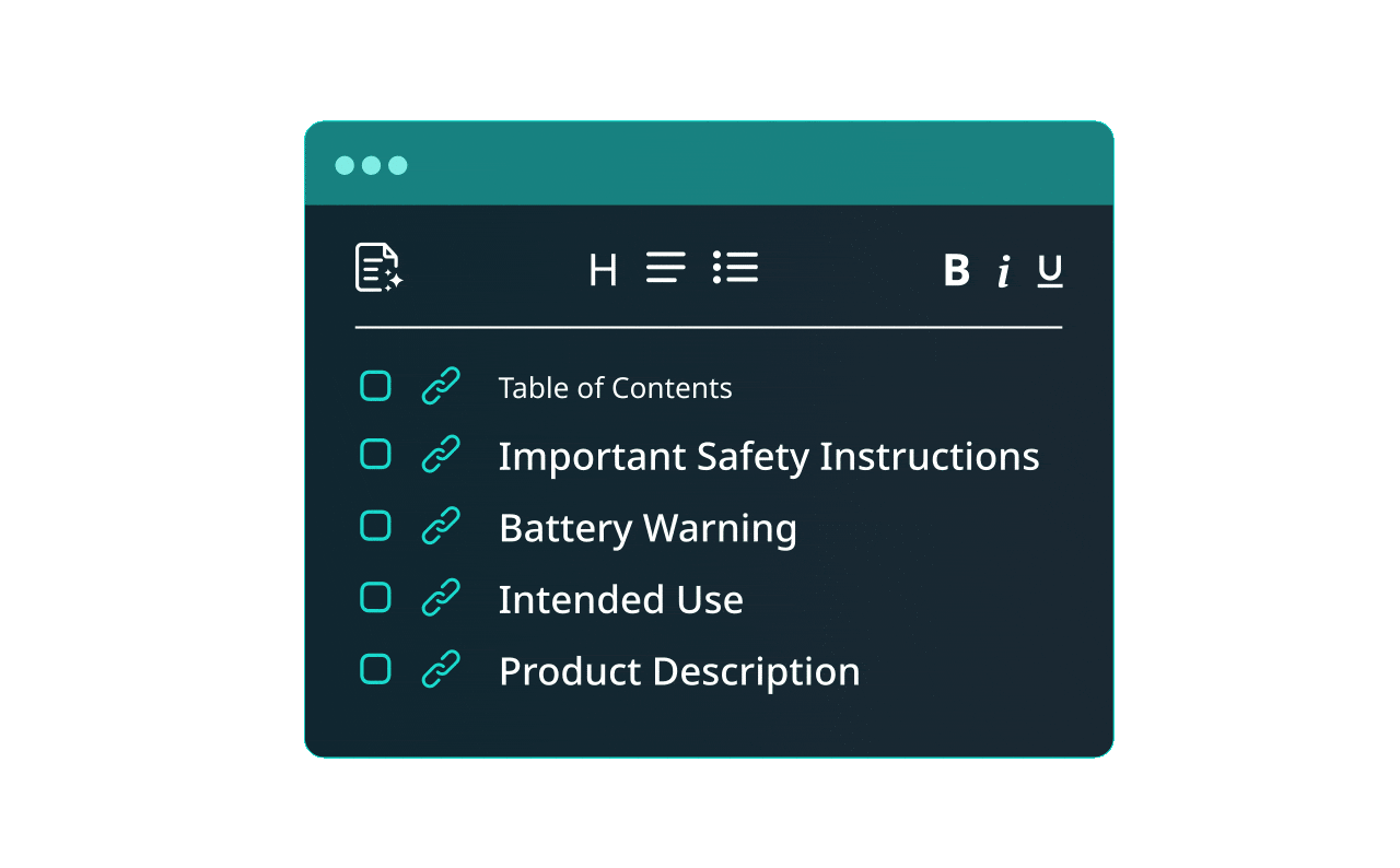 Use smart content blocks to build and refine your manuals — now enhanced with Pergami AI Assistant, allowing you to edit by simply prompting.